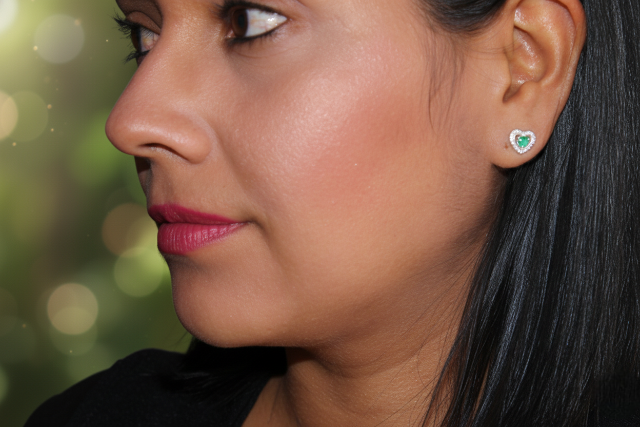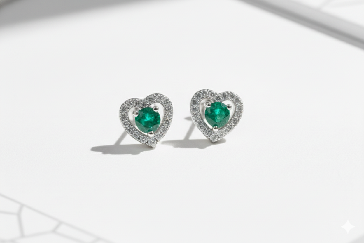 Topitos corazón con esmeralda natural – símbolo de amor y elegancia eterna